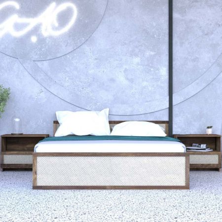 Cama queen size. La cabecera y el pie de cama son de ratán. Utilice tablas de 4 cm de ancho para formar un marco rectangular alrededor de los cuatro lados. En el marco cuadrado, el material central se procesa en el plano de tejido de ratán. Fíjela en la parte trasera con un tablero de MDF de 2,5 cm, logrando una superficie plana y sólida. El panel trasero de MDF reduce la probabilidad de daños y agujeros en la superficie de ratán. La cama de 160 cm es ideal para dos personas. Se sostiene sobre 5 tubos cuadrados de acero de 2 mm de espesor. Se puede colocar un colchón encima para proporcionar un espacio cómodo para dormir. Para clientes con presupuestos limitados, podemos cambiar a madera maciza o laminado de papel para ofrecer precios aún más bajos. Cumpliendo con las restricciones de embalaje de la UE.SlicethinnerSe puede controlar eficazmente. Facilita el envío de productos a toda Europa. Además, se puede comprimir hasta 30 kg por paquete. Para mayor colaboración, contáctenos.