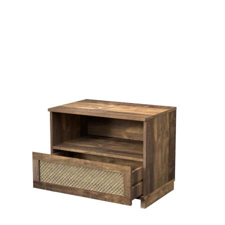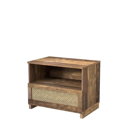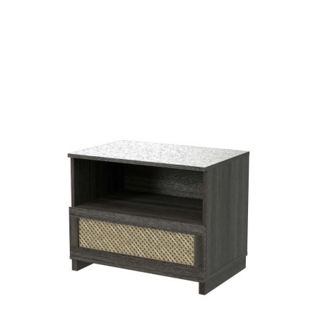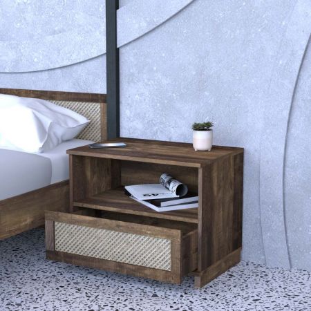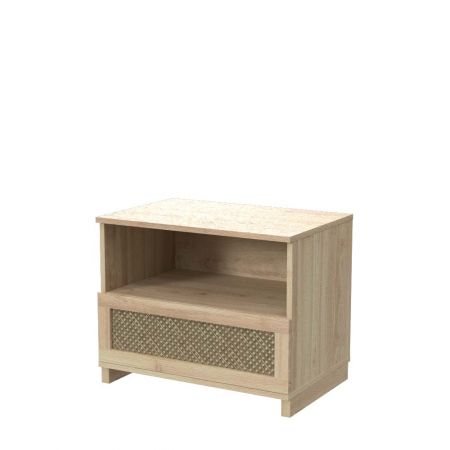 Mesita de noche de ratán con un cajón