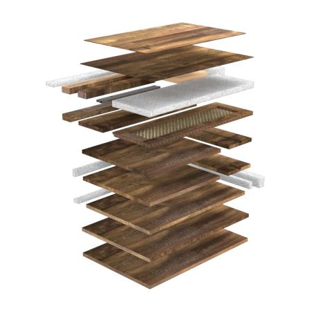 - Madera maciza, PB, MDF, laminado de papel, chapa, ratán
